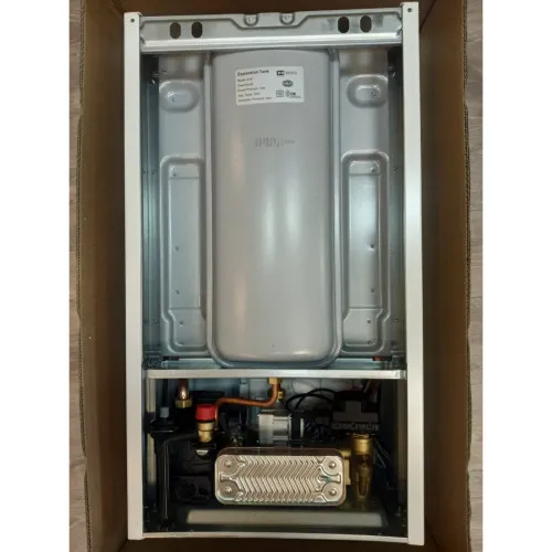 Первичный теплообменник изготовлен из чистой меди, а вторичный – из прочной нержавеющей стали. Это обеспечивает повышенную устойчивость к жесткой воде, что является значительным преимуществом. Котел изначально рассчитан на природный газ, но может быть переоборудован для работы на сжиженном газе.